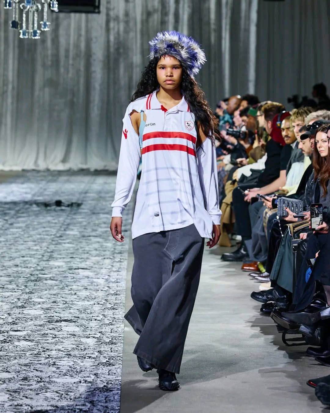 خطفت عارضة أزياء الأنظار خلال عرض مجموعة "ذا شيل" The Shell للمصممة الألمانية ماري لودر ضمن فعاليات أسبوع الموضة في برلين لخريف وشتاء 2025، حيث ظهرت مرتدية قميص نادي الزمالك المصري في مشهد غير مألوف.