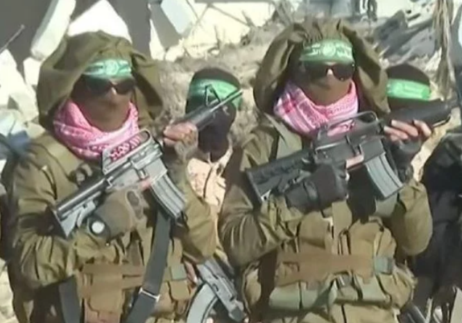 ارتدى عناصر قوات النخبة في حركة حماس، زي جيش الاحتلال الإسرائيلي، تم الاستلاء عليها في 7 أكتوبر 2023، بالإضافة إلى الأسلحة، وظهر عناصر الفصائل وهم يرتدون زي عسكري إسرائيلي وأسلحة أخذت من جيش الاحتلال في أكتوبر 2023، أثناء تسليم 3 محتجزين اليوم من قطاع غزة.