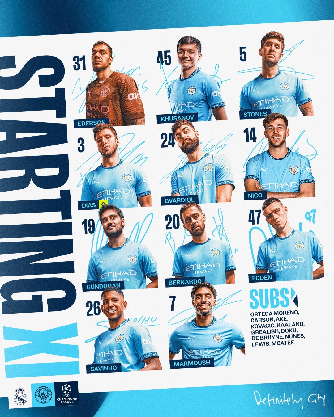 أورتيجا مورينو- كارسون- ناثان آكي- ماتيو كوفاسيتش- إيرلينج هالاند- جاك جريليتش- جيريمي دوكو- كيفين دي بروين- ماتيوس نونيز- مكاتي- ريكو لويس.