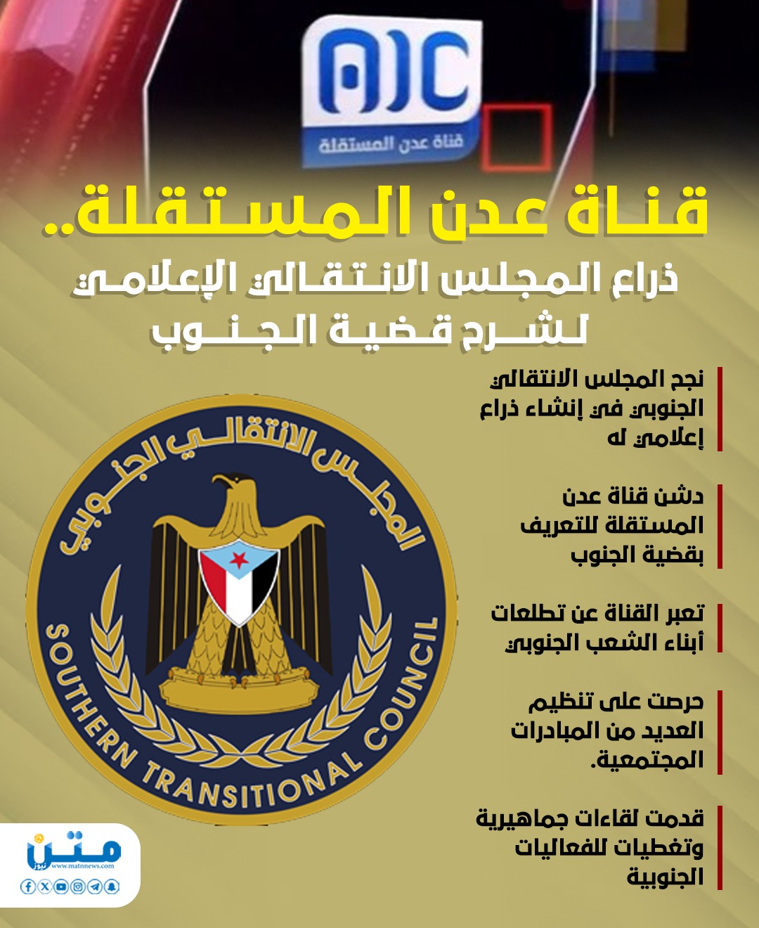 قناة عدن المستقلة.. ذراع المجلس الانتقالي الإعلامي لشرح قضية الجنوب (إنفوجراف)