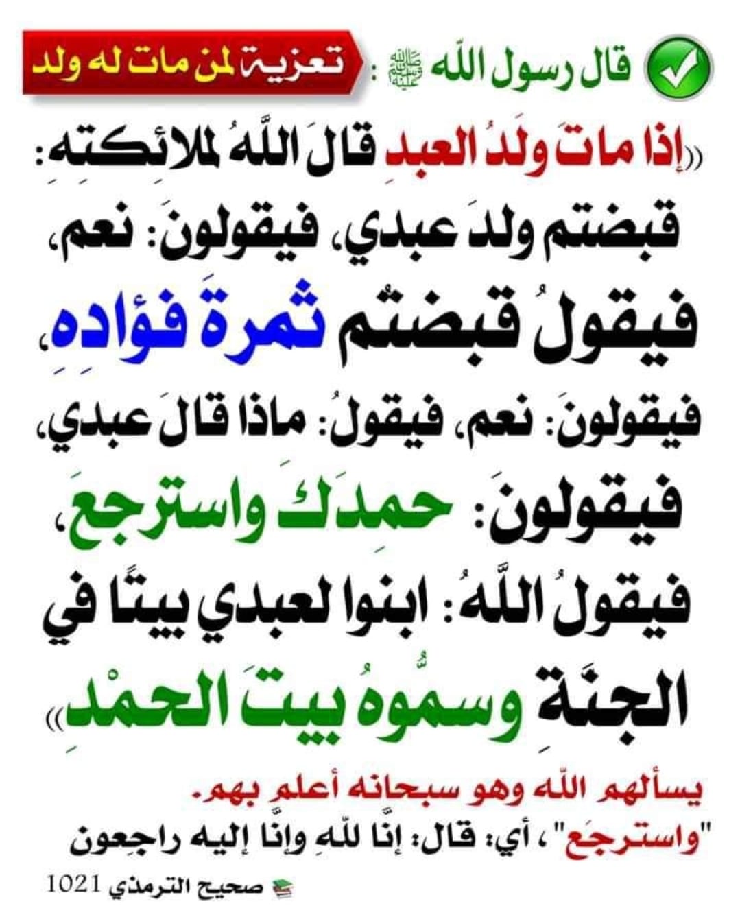 "اللهم اربط على قلوبكم وصبّركم، ففقدان الطفل مؤلم، ولكن رحمة الله أوسع."