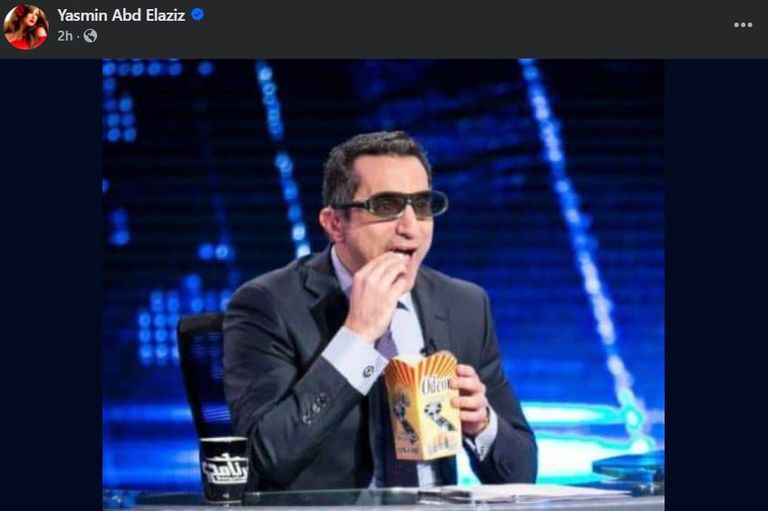 جاء ذلك بعد أن نشرت ياسمين صورة ساخرة للإعلامي باسم يوسف عبر حسابها الرسمي على فيسبوك، دون أي تعليق..