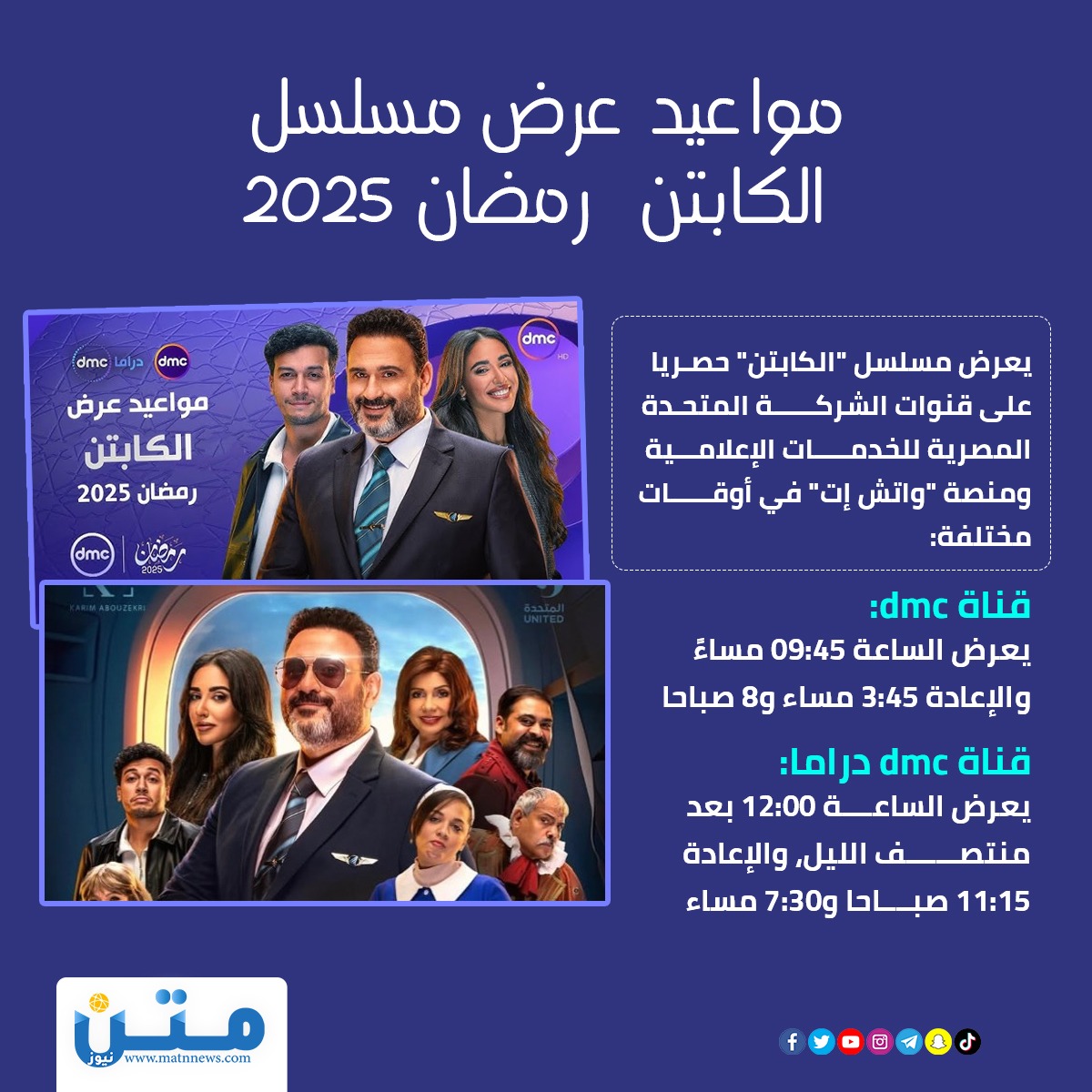مواعيد عرض مسلسل "الكابتن" رمضان 2025 (انفوجراف)