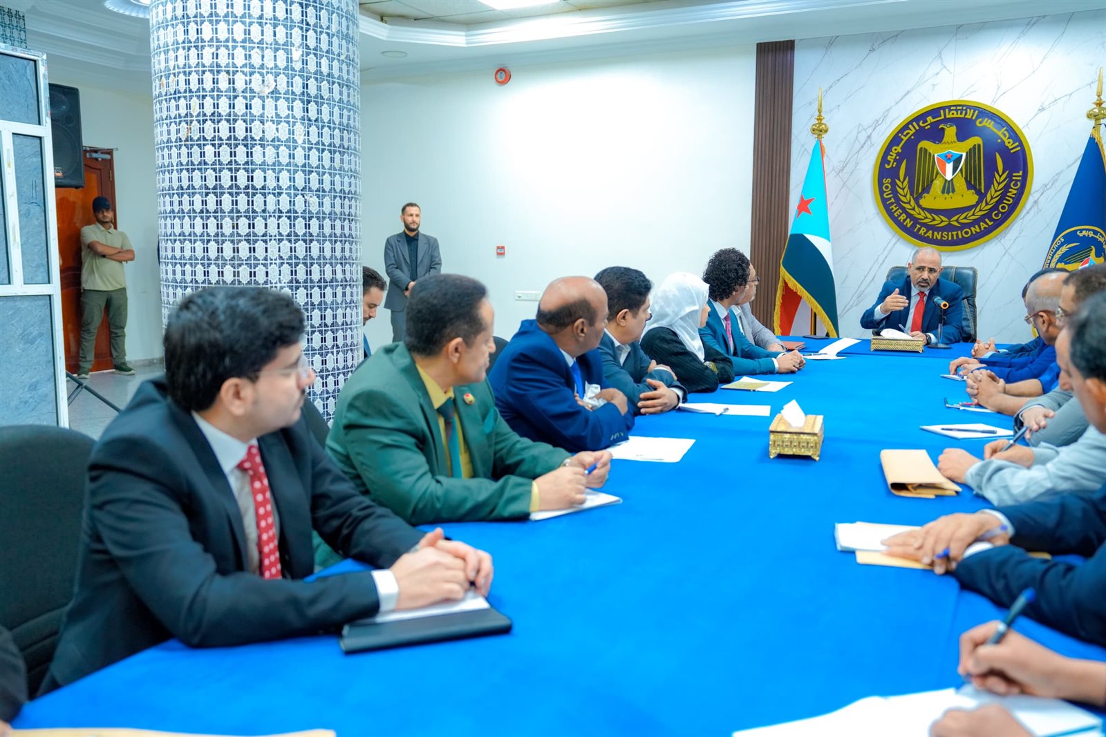 وتناول الاجتماع بعدها جملةً من الجوانب التنظيمية ذات الصلة بعمل هيئات المجلس، وفي مقدمتها عملية إعادة الهيكلة، وفي هذا الشأن، شدد الرئيس القائد على ضرورة الإسراع في استكمال ما تبقى من إجراءات ضمن مهام الهيئات المحلية، والحرص على الاستفادة من جميع الكفاءات والخبرات في إطار الهيئات، بما يضمن رفع جودة الأداء ويتواكب مع مستوى المسؤوليات الملقاة على عاتق المجلس ككيان سياسي يعبر عن تطلعات شعب الجنوب.