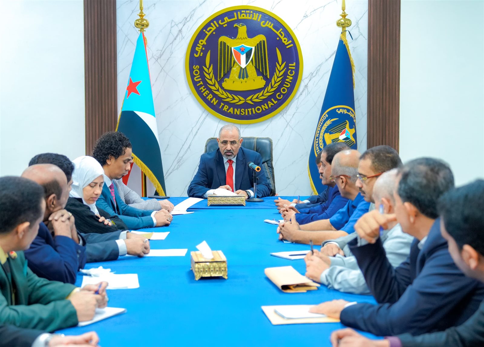 رأس اللواء عيدروس قاسم الزُبيدي، رئيس المجلس الانتقالي الجنوبي نائب رئيس مجلس القيادة الرئاسي باليمن، اليوم الثلاثاء، اجتماعا استثنائيا برؤساء الهيئات التنفيذية للقيادات المحلية للمجلس الانتقالي الجنوبي في المحافظات، ورؤساء عدد من دوائر الأمانة العامة لهيئة رئاسة المجلس.