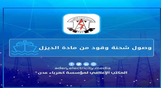 أعلنت المؤسسة العامة لكهرباء عدن عن وصول سفينة تحمل 11،500 طن من مادة الديزل إلى ميناء الزيت بمديرية البريقة، وتجري حاليًا الفحوصات الروتينية اللازمة تمهيدًا للبدء بتزويد محطات توليد الكهرباء بهذه الكميات، كما من المقرر أن تصل خلال الأيام القادمة شحنة أخرى من مادة المازوت المخصص لمحطتي المنصورة والحسوة.