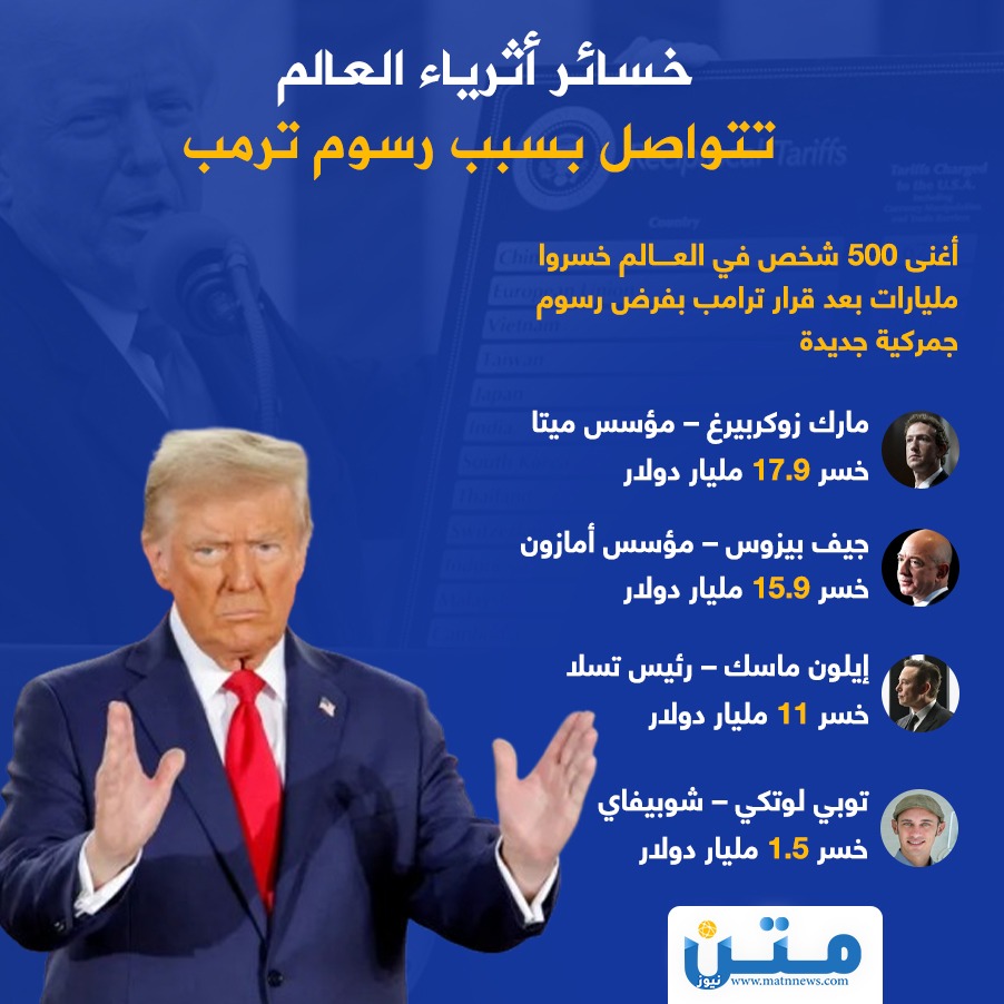 - أغنى 500 شخص في العالم خسروا مليارات بعد قرار ترامب بفرض رسوم جمركية جديدة