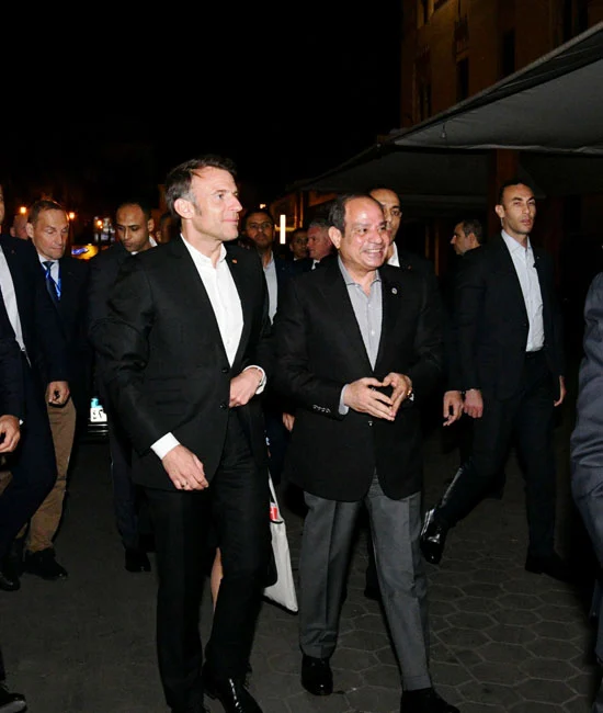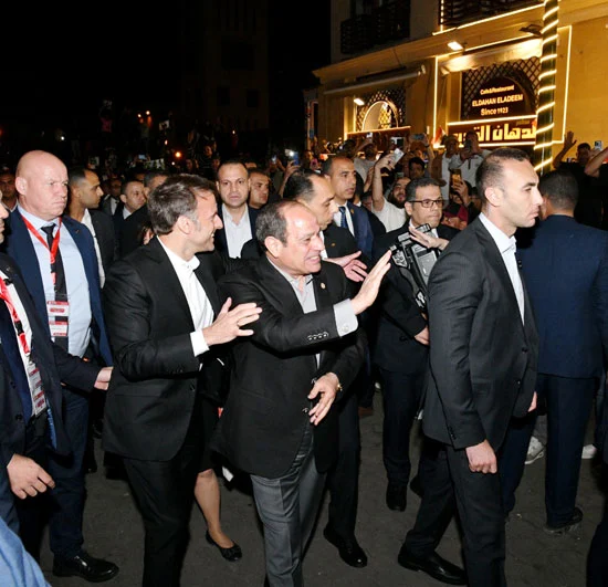 واصطحب الرئيس السيسى نظيره الفرنسى وجلسا فى أحد المقاهى التاريخية بالمنطقة العريقة، فى لقاء ودي يؤكد على متانة العلاقات بين الزعيمين والبلدين الكبيرين.