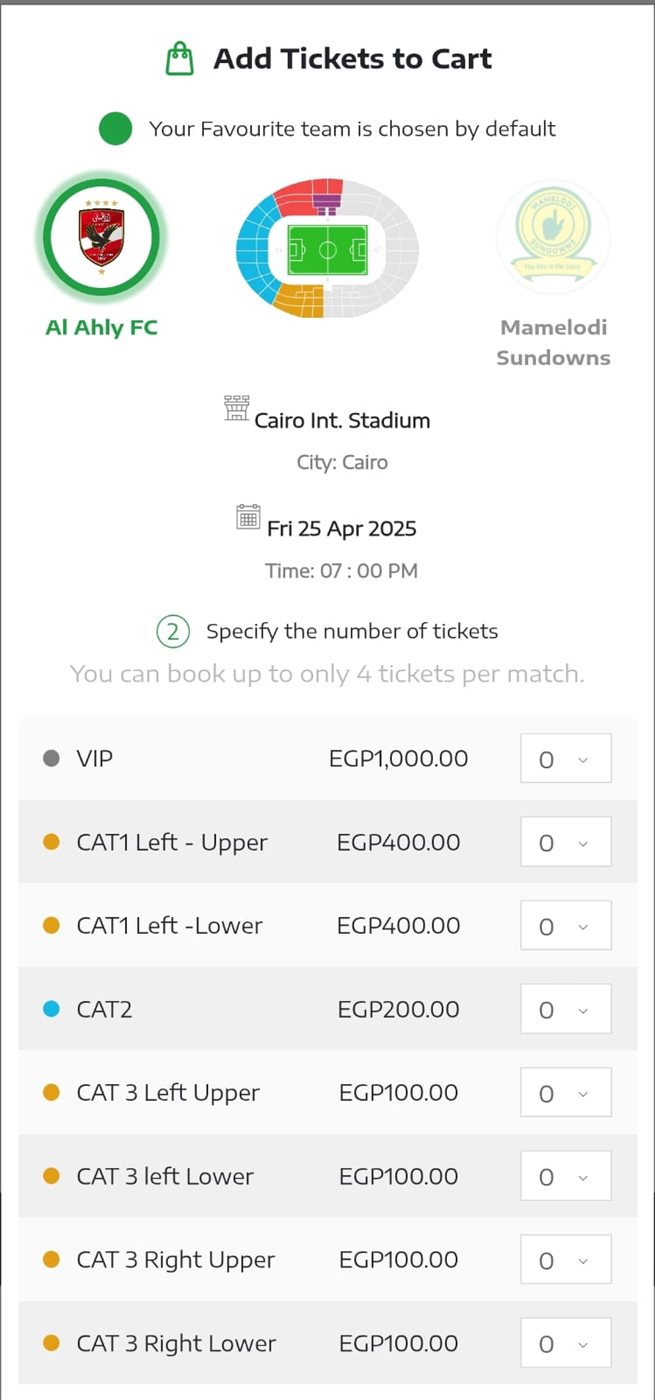 أسعار تذاكر مباراة الأهلي وصن داونز في إياب نصف نهائي دوري أبطال إفريقيا