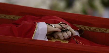 وأشارت صحيفة انفوباى الأرجنتينية إلى أن القرار الأكثر إلحاحا هو تحديد موعد نقل جثمانه إلى كنيسة القديس بطرس لإقامة الجنازة عليه، ونشرت الصور الأولى للبابا فرانسيس، حيث ظهر في نعشه الخشبى، مرتديا ثيابا حمراء وغطاء رأس أسقفه، بينما صلى صلى عليه وزير خارجية الفاتيكان في كنيسة دوموس سانتا مارتا، حيث كان يعيش.