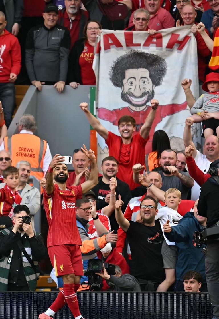 وخلال احتفاله بالهدف، التقط صلاح صورة سيلفي مع الجماهير من خلال هاتف أحد المشجعين في لقطة ستظل محفورة بالذاكرة.