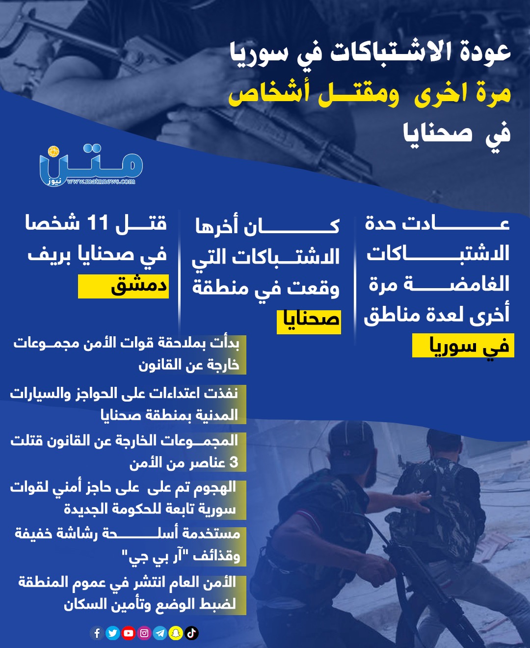 عودة الاشتباكات في سوريا مرة أخرى ومقتل أشخاص في صحنايا (إنفوجراف)