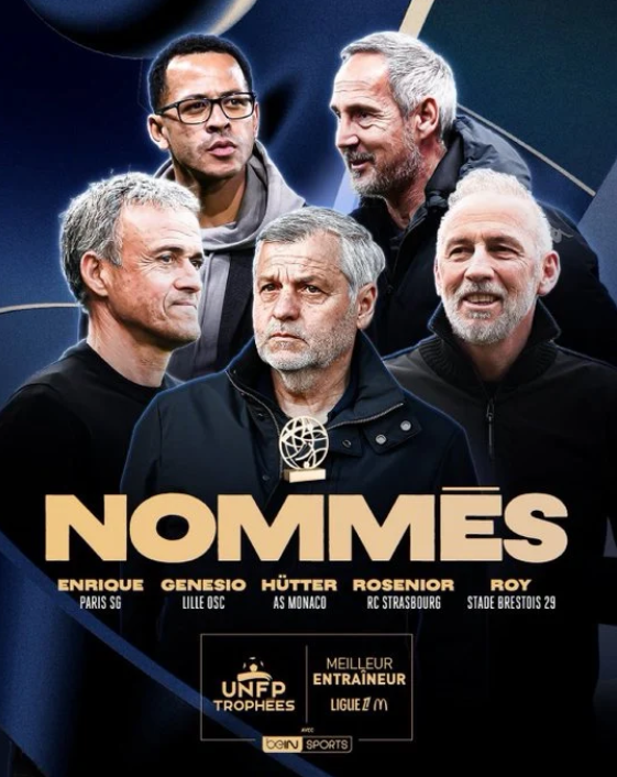 جائزة أفضل مدرب في الدوري الفرنسي، ضمت كل من لويس إنريكي مدرب باريس سان جيرمان، برونو جينيسيو مدرب ليل، آدي هوتر مدرب موناكو، ليام روزينيور المدير الفني لفريق ستراسبورج وإريك روي مدرب ستاد بريست.