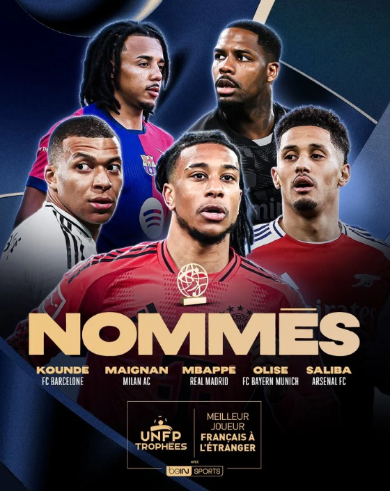 قائمة المرشحين لجائزة أفضل لاعب فرنسي محترف بالخارج، ضم كيليان مبابي نجم ريال مدريد، جول كوندي مدافع برشلونة، ويليام ساليبا مدافع أرسنال، ماينان حارس ميلان ومايكل أوليس لاعب بايرن ميونخ.