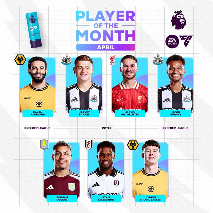 - هارفي بارنز - لاعب نيوكاسل يونايتد: سجل 4 أهداف وصنع هدفين، وذلك في 6 مباريات خلال الشهر الماضي.