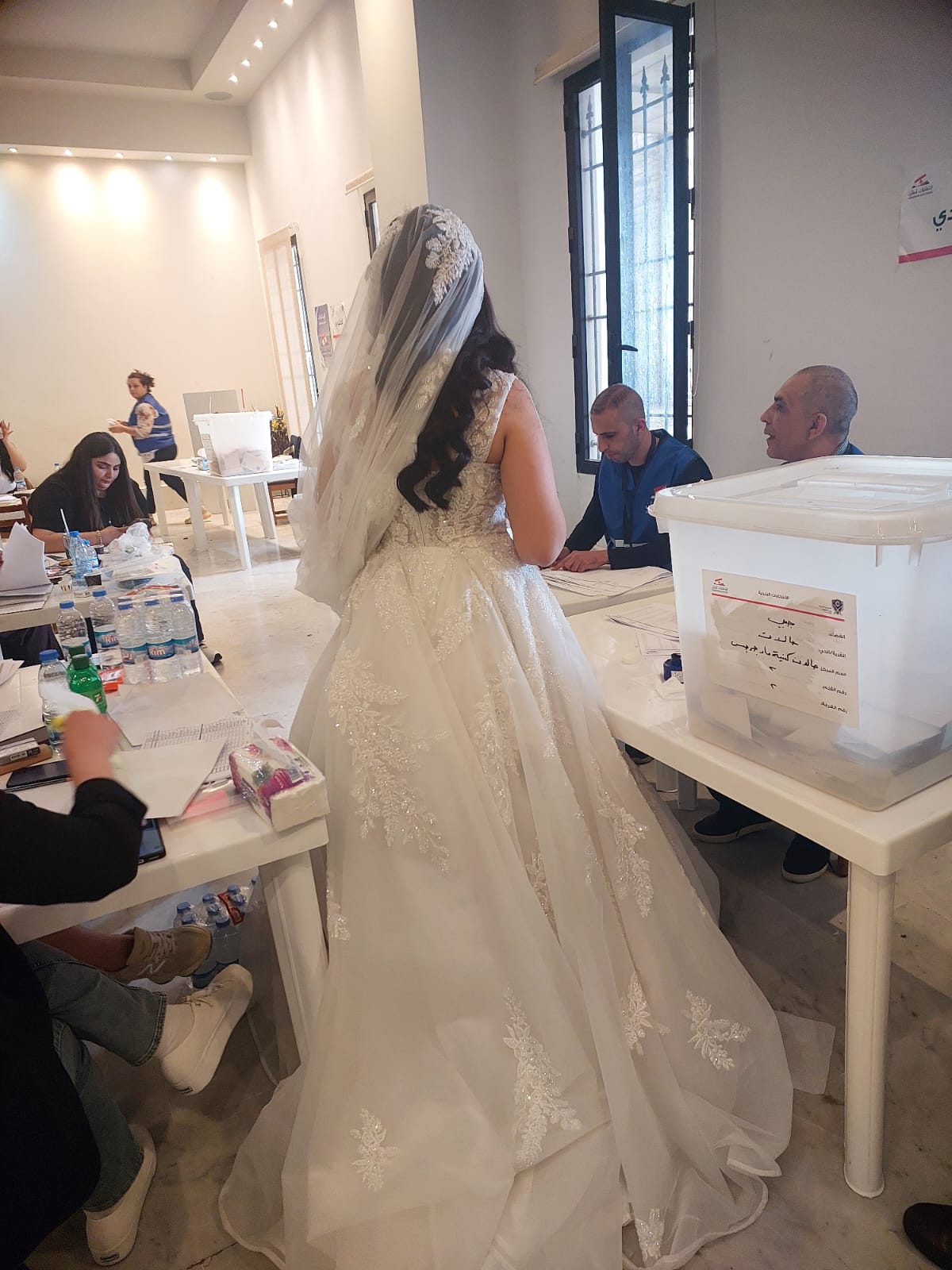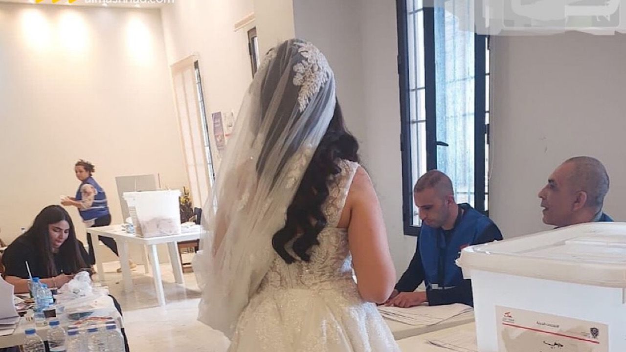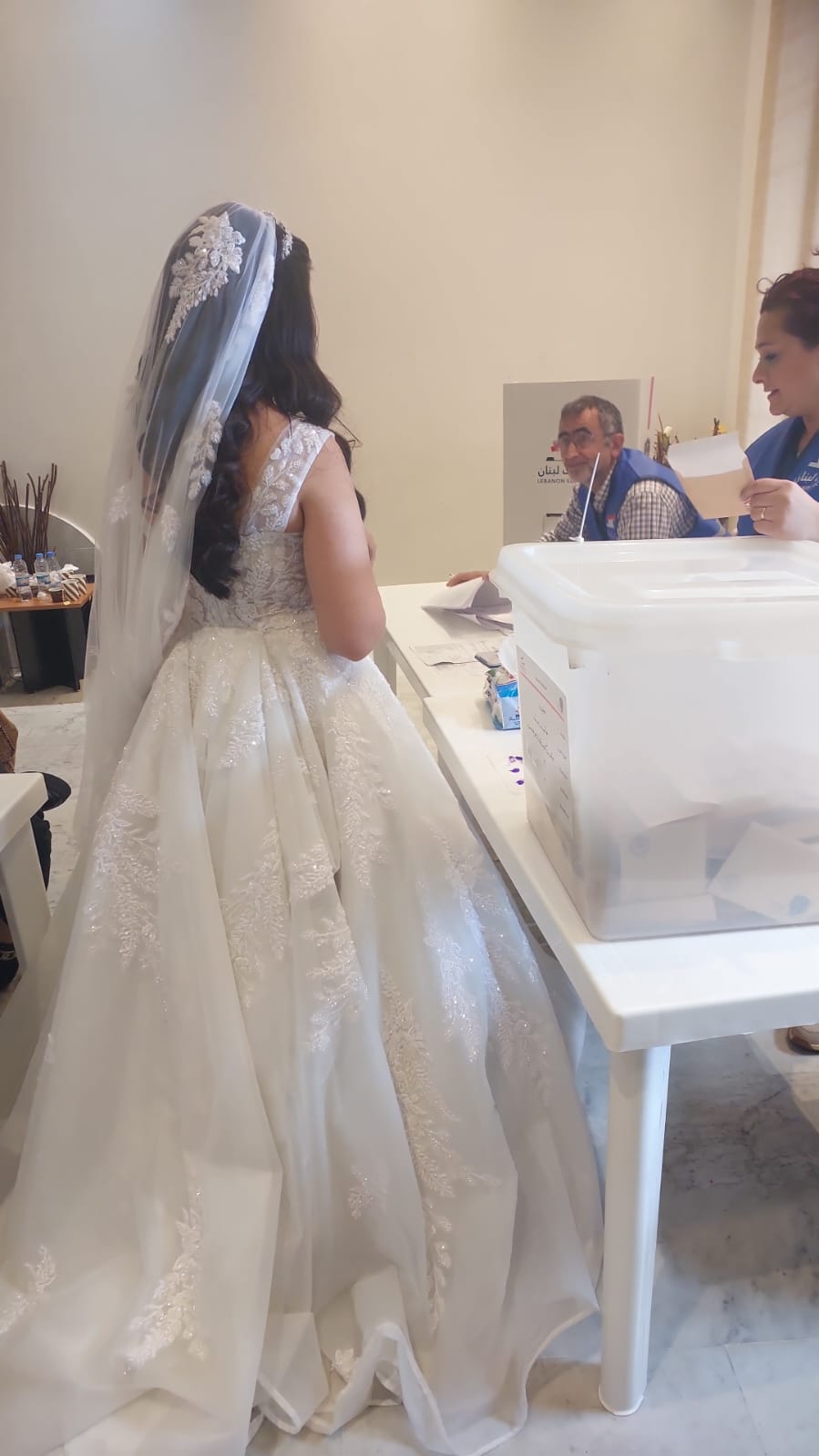 ووصلت عروس بفستان زفافها إلى مركز الاقتراع في بلدة حالات - صالون كنيسة مار جرجس، للإدلاء بصوتها في الانتخابات البلدية والاختيارية في محافظة جبل لبنان التي انطلقت صباح اليوم.