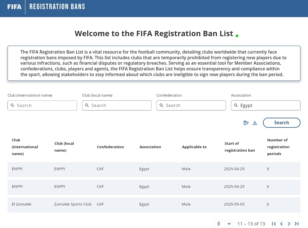 عاجل.. إيقاف قيد الزمالك 3 فترات بعقوبة جديدة من الفيفا