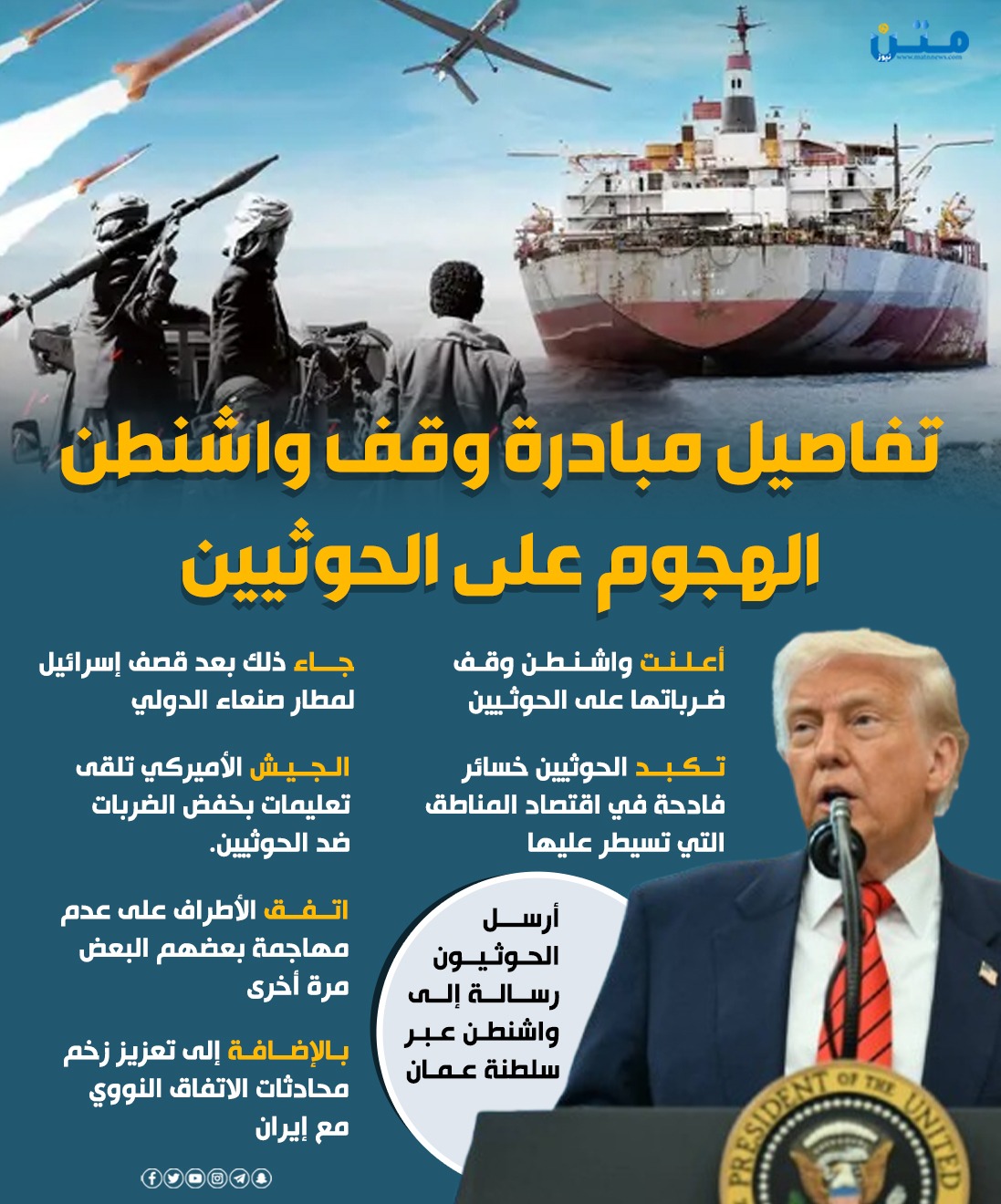 تفاصيل مبادرة وقف واشنطن الهجوم على الحوثيين (فيديوجراف)
