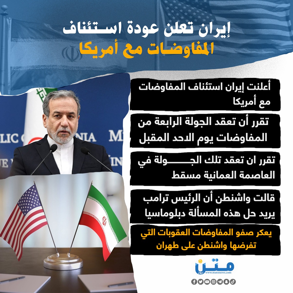 إيران تعلن عودة استئناف المفاوضات مع أمريكا (إنفوجراف)
