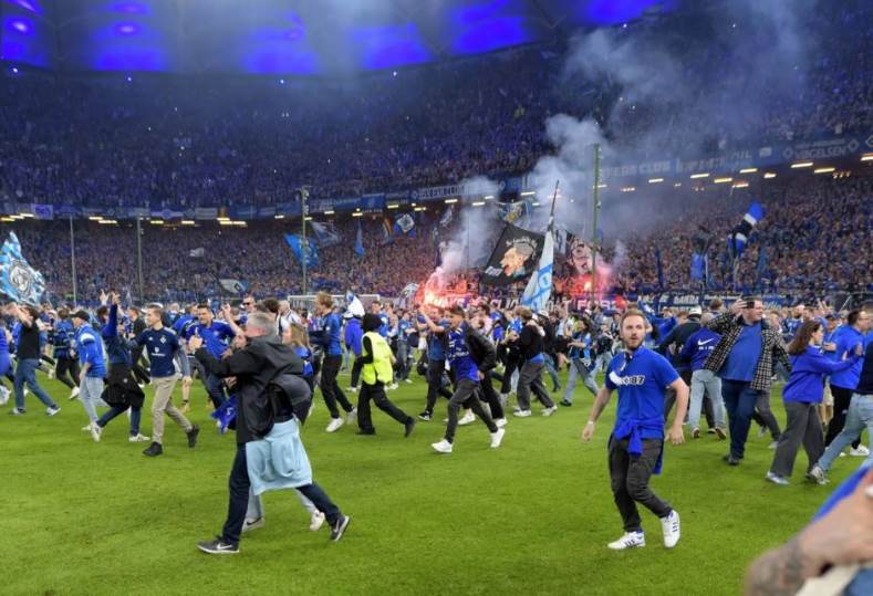 وذكرت تقارير إعلامية ألمانية، أنه بمجرد نهاية المباراة اجتاحت أعداد من الجماهير ملعب "فولكسبارك ستاديون" حيث قفز المشجعون من المدرجات وأسقطوا اللوحات الإعلانية وركضوا لأرض الملعب.