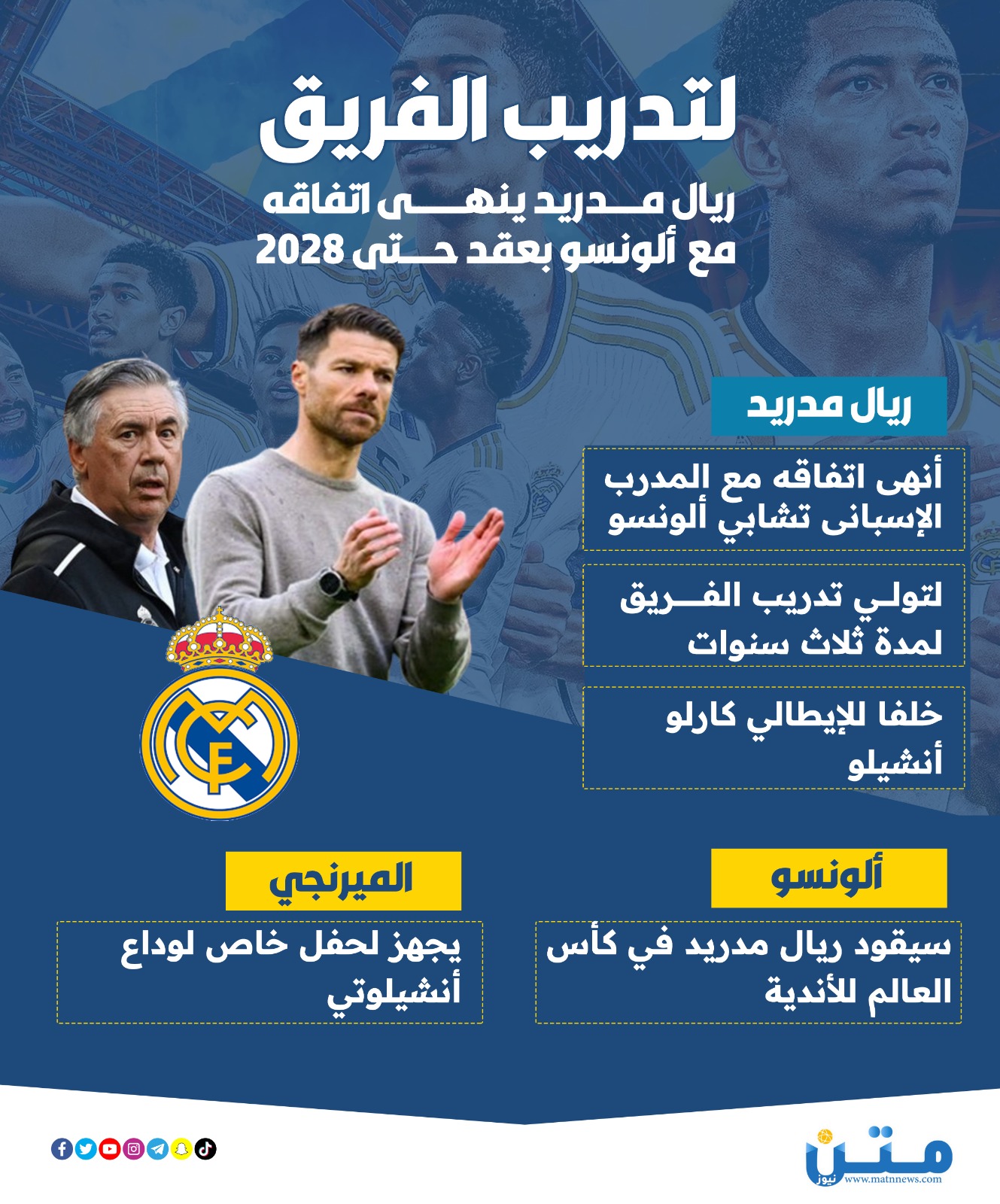 لتدريب الفريق.. ريال مدريد ينهى اتفاقه مع ألونسو بعقد حتى 2028 (انفوجراف)