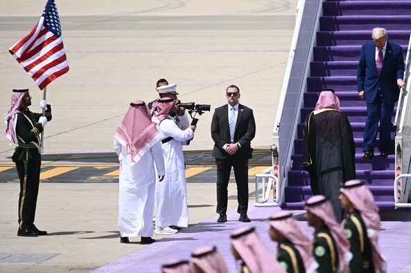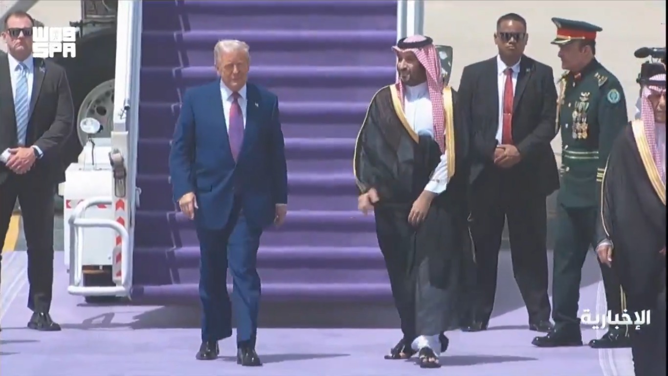 كان ترامب وصل صباح اليوم إلى المملكة العربية السعودية فى مستهل جولة خليجية، تشمل قطر والإمارات.