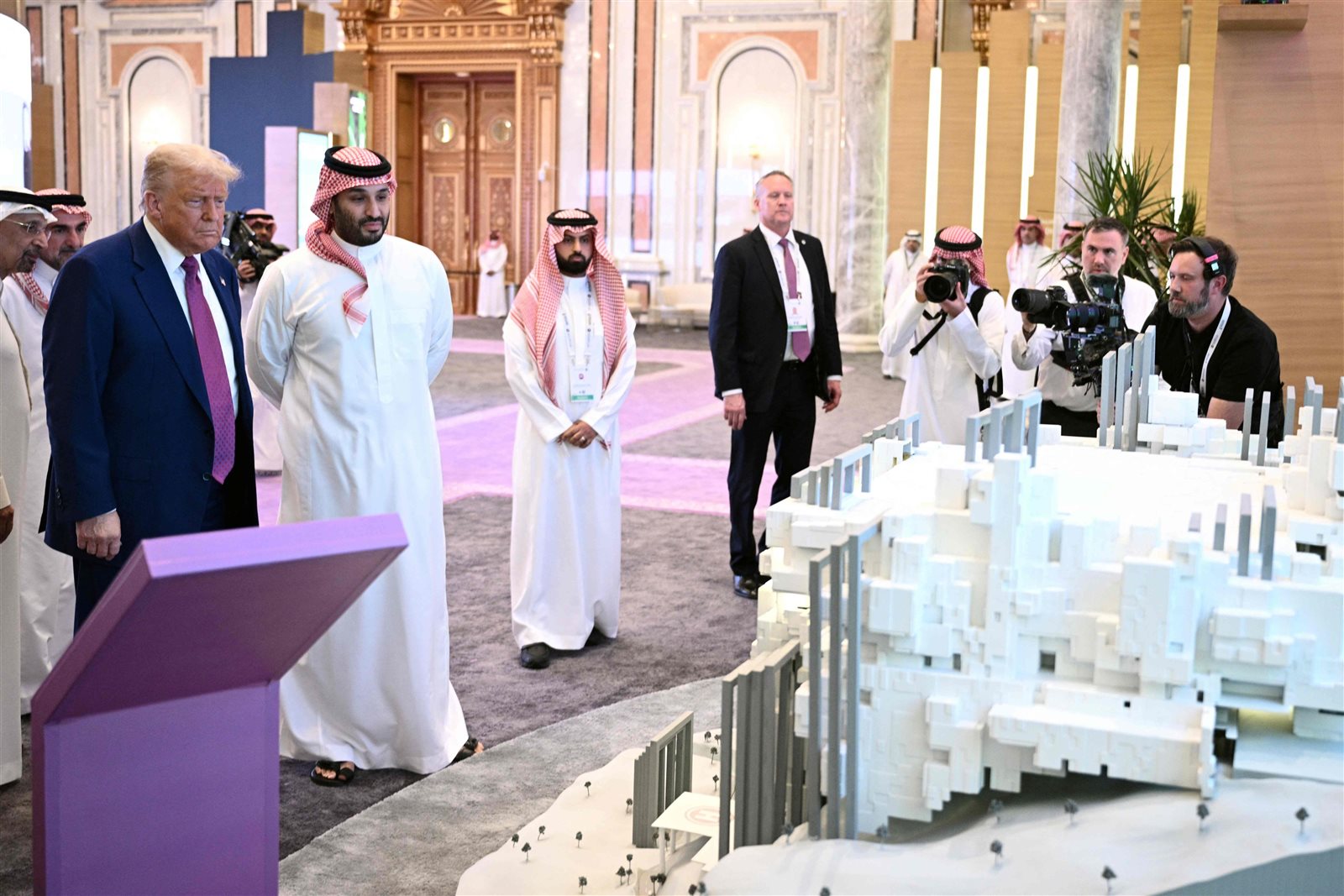 وخلال زيارة ترامب إلى المملكة، استعرض محمد بن سلمان لدونالد ترامب مجسمات ملاعب السعودية لاستضافة بطولة كأس العالم 2034.
