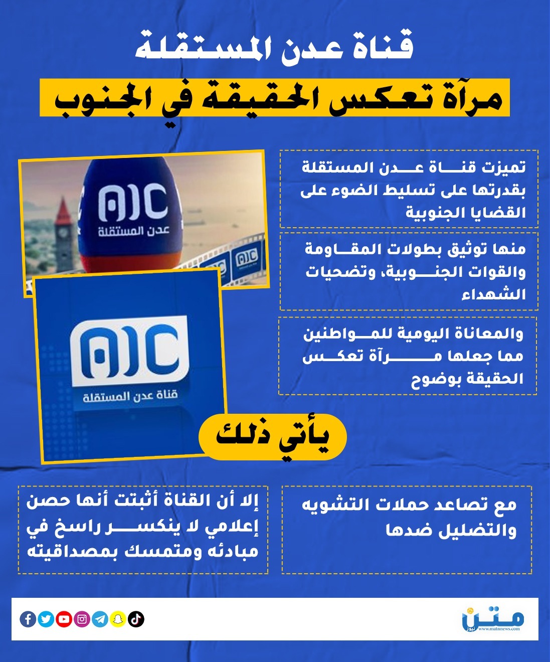 قناة عدن المستقلة.. مرآة تعكس الحقيقة في الجنوب (انفوجراف)