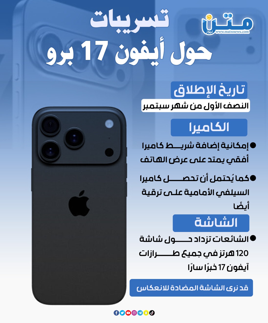 تسريبات حول أيفون 17 برو (انفوجراف)