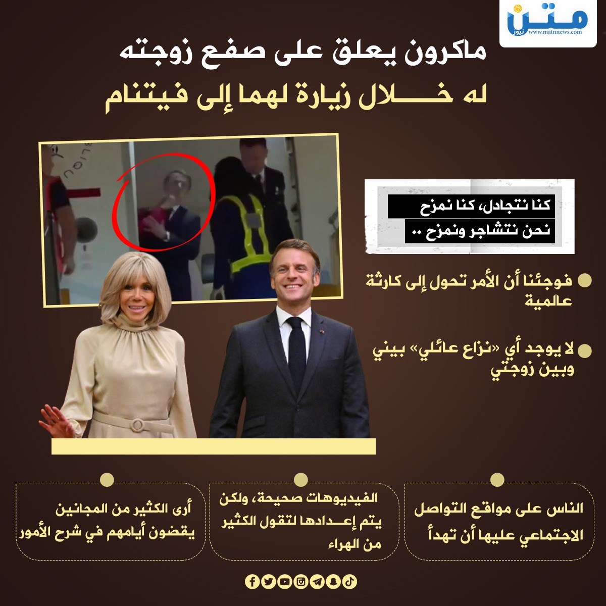 ماكرون يعلق على صفع زوجته له خلال زيارة لهما إلى فيتنام (إنفوجراف)