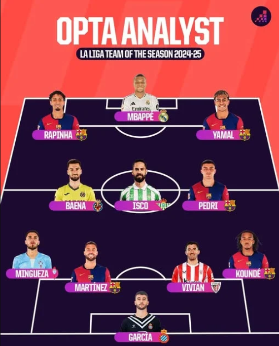كشفت تقارير إعلامية عن التشكيلة المثالية للدوري الإسباني "الليجا" لموسم 2024-2025، والتي شهدت حضورًا لافتًا لنجوم برشلونة.