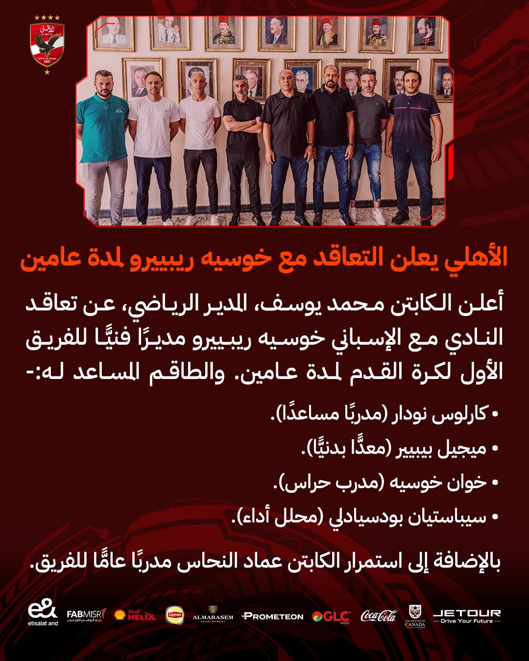 أعلن النادي الأهلي المصري، رسميًا، اليوم الخميس، تعيين الإسباني خوسيه ريبييرو مديرًا فنيًا للفريق الأول، لمدة عامين قادمين.