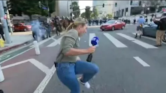 أصيبت مراسلة صحفية برصاص مطاطي، خلال تغطيتها لـ احتجاجات لوس أنجلوس التي اندلعت بسبب مشاكل متعلقة بالهجرة، بعد أن استخدمت الشرطة الأمريكية طلقات غير قاتلة لتفريق المتظاهرين.