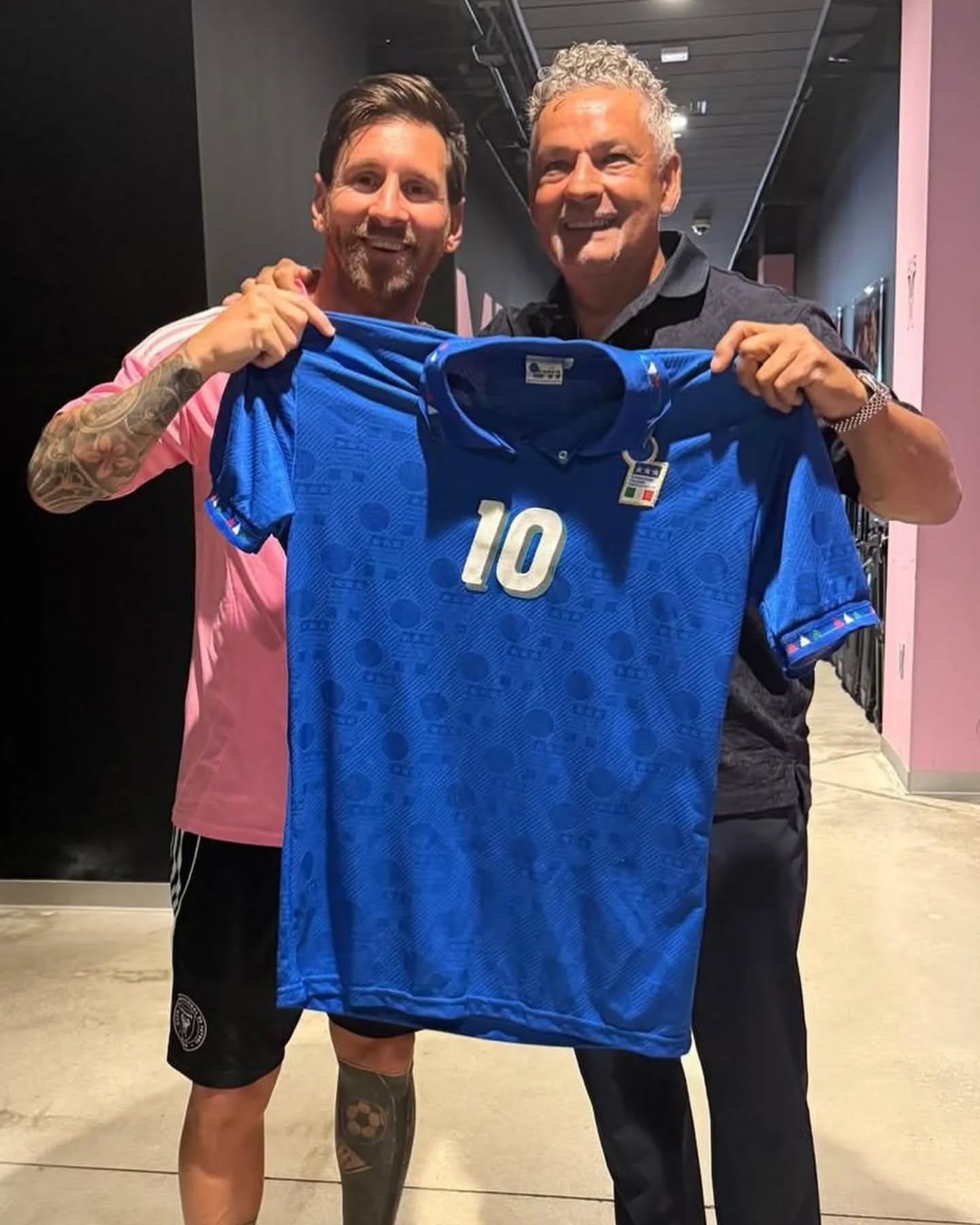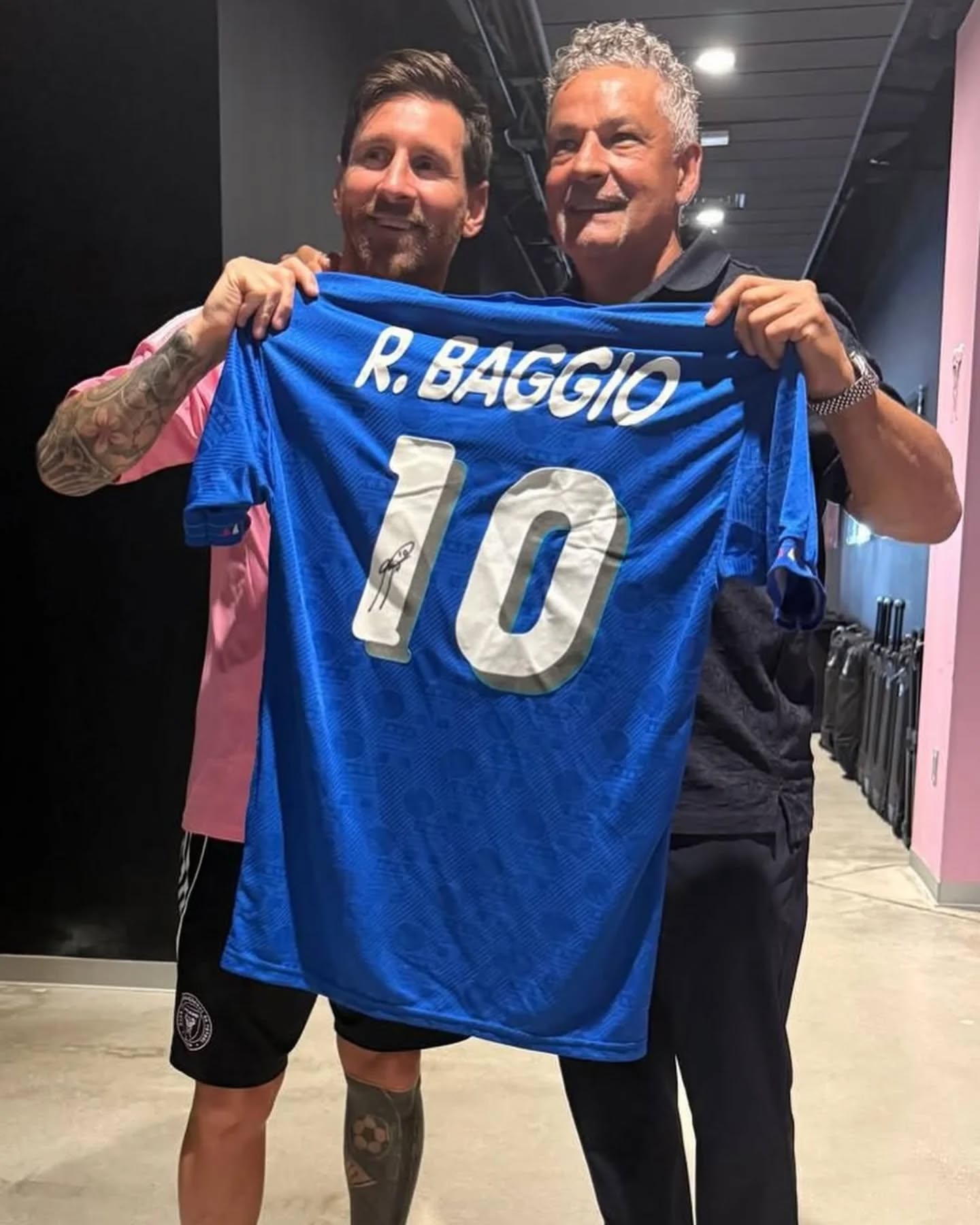ونشر ميسي مجموعة صور مع روبيرتو باجيو أحدها لقميص الآتزوري في كأس العالم 1994 والذي حمل رقم 10 الذي ارتداه الفائز السابق بالكرة الذهبية وتوقيعه.