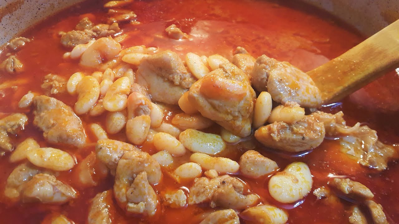 - ثم يضاف خليط الدجاج إلى الفاصوليا المسلوقة، ثم يترك المزيج على نار خفيفة لمدة 20 دقيقة تقريبا حتى تتداخل النكهات ويكتمل نضج الفاصوليا ويمكن إضافة القليل من الماء الساخن إذا لزم الأمر.