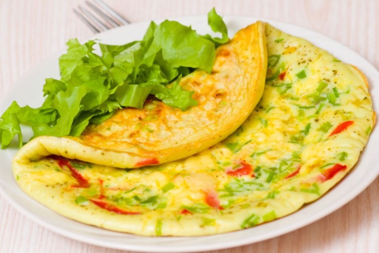 الأومليت من الوجبات الكلاسيكية السريعة، ويمكن جعله أكثر صحة بإضافة مكونات نباتية مثل الفلفل الملون، والبصل، والكوسة المبشورة، والسبانخ حيث تخفق بيضتان ويضاف إليهما الخضار المقطعة، ثم تطهى في مقلاة غير لاصقة بقليل من زيت الزيتون وهذه الوجبة غنية بالبروتين والفيتامينات، وتناسب الكبار والصغار.