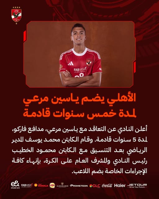 الصفقة السابعة.. الأهلي المصري يعلن ضم ياسين مرعي رسميا
