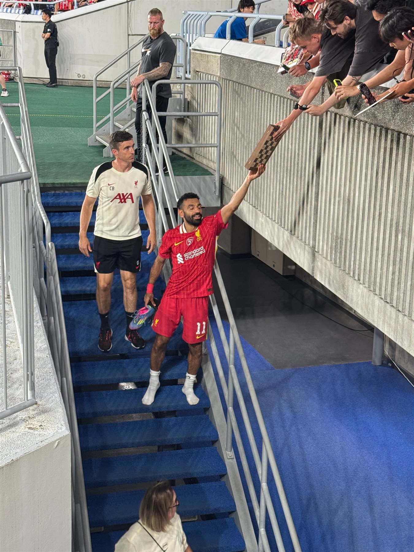 تلقى النجم المصري محمد صلاح لاعب نادي ليفربول الإنجليزي هدية غير متوقعة على هامش مشاركته في المباراة الودية التي جمعت بين ناديا ليفربول ويوكوهاما الياباني أمس الأربعاء، ضمن استعدادات "الريدز" لخوض منافسات الموسم الجديد، والتي انتهت بفوز ليفربول بنتيجة 3 – 1.