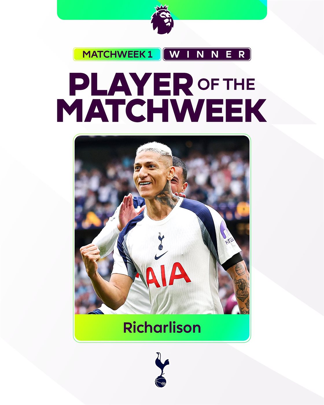 وقال الحساب الرسمي لـ الدوري الإنجليزي الممتاز على موقع التواصل الاجتماعي "إكس": "ريتشارلسون أفضل لاعب في مباراة الأسبوع الافتتاحي".