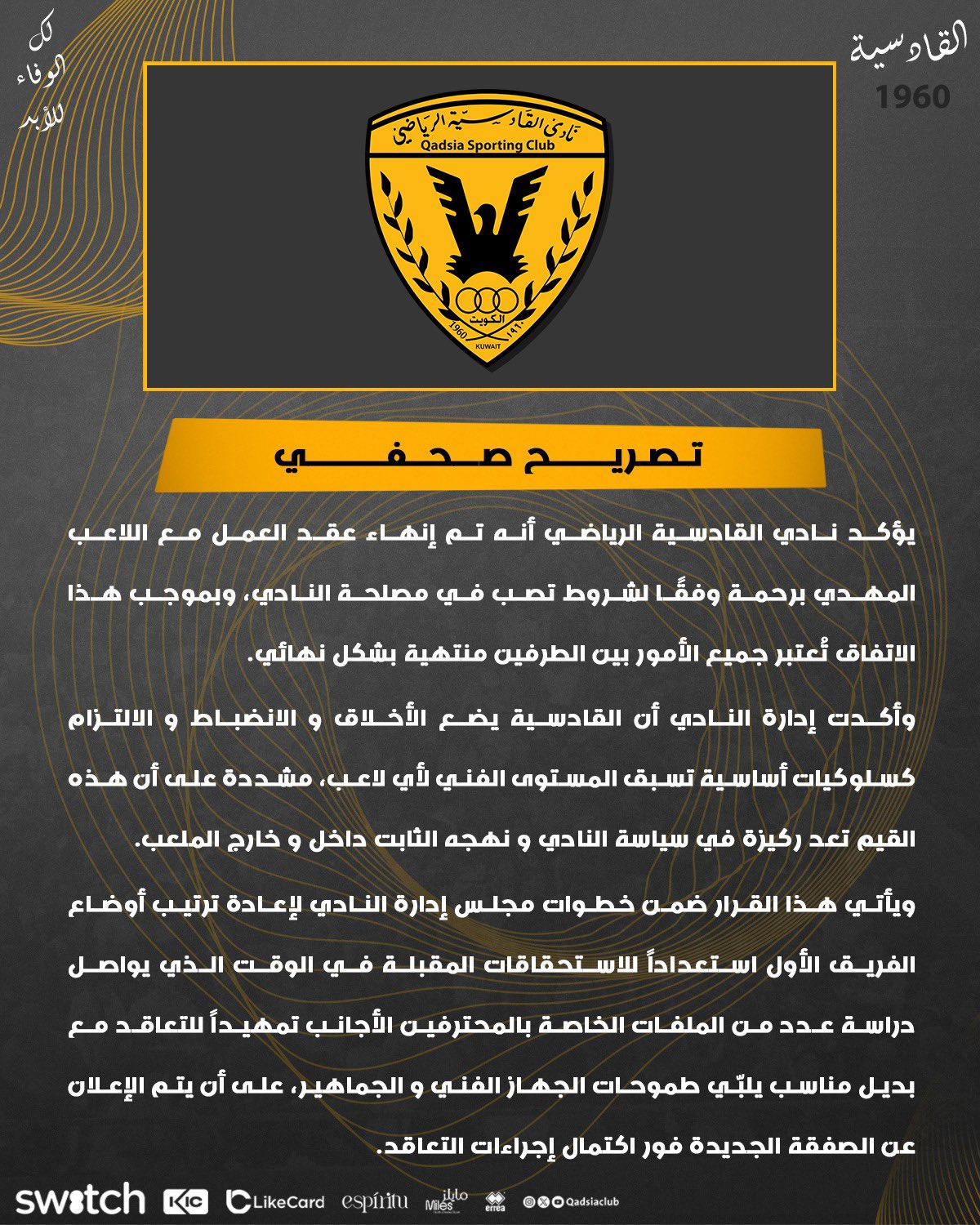 ولم يوضح نادي القادسية أي تفاصيل حول الأسباب التي أدت إلى فسخ عقد برحمة.