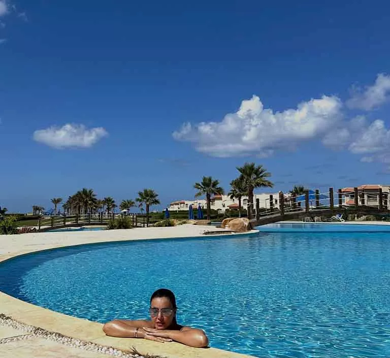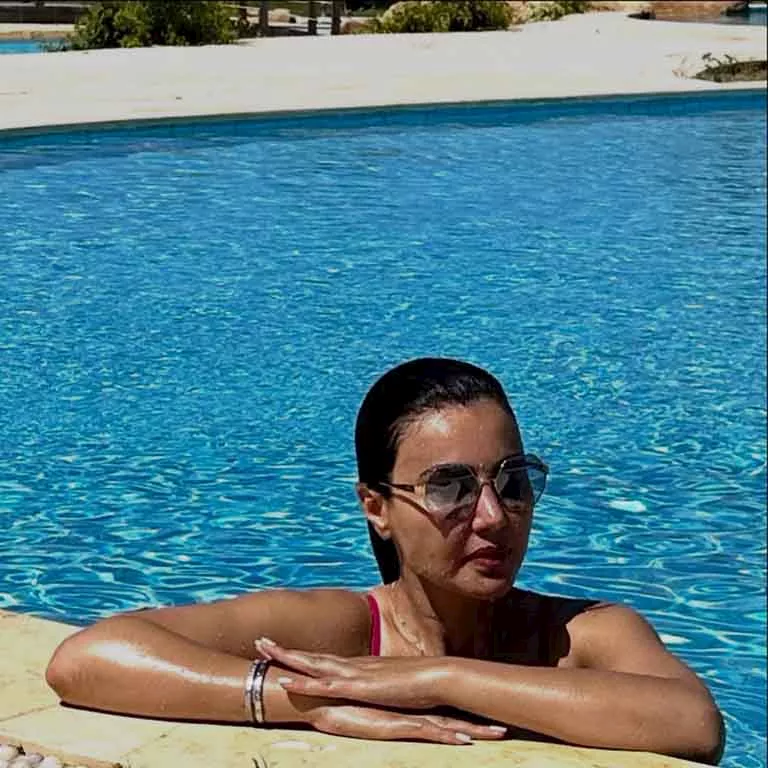 دينا فؤاد تخطف الأنظار بإطلالة صيفية في حمام السباحة