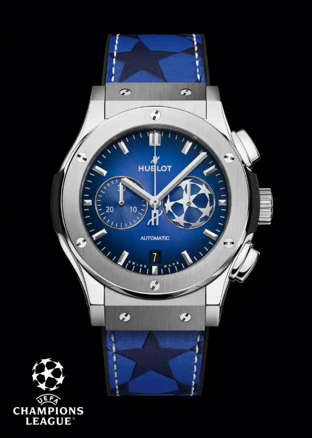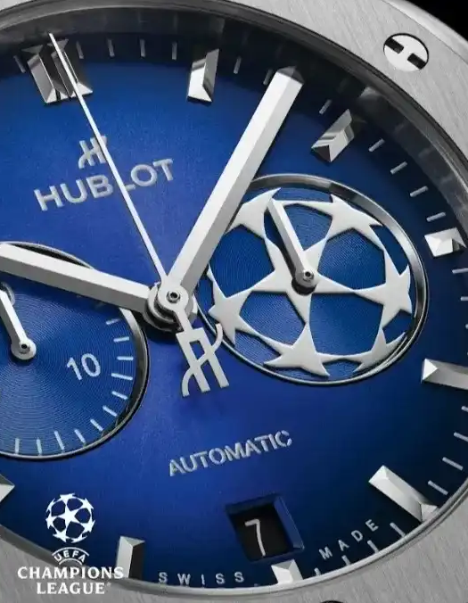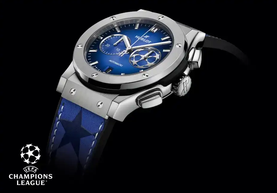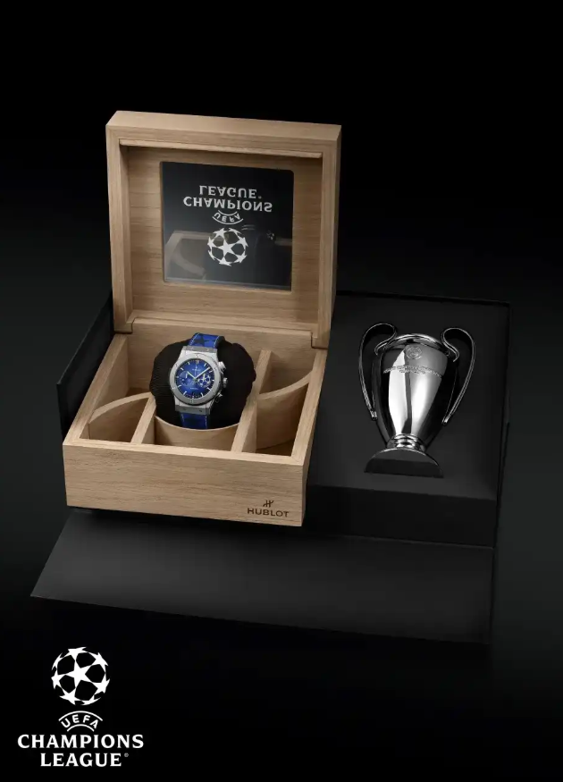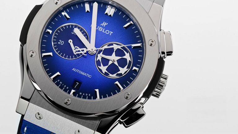 يتميز إطار الساعة المصنوع من التيتانيوم بوجه أزرق يحمل شعار دوري أبطال أوروبا المصغر، ويتم طرح هذه الساعة ذات الإصدار المحدود للبيع بسعر يبلغ 11 ألفا و800 جنيه استرليني.