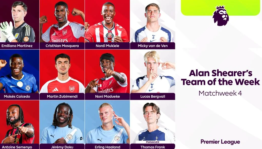 أعلنت رابطة الدوري الإنجليزي الممتاز التشكيل المثالي للجولة الرابعة من البريمرليج، والتي تصدرها النجم النرويجي إيرلينج هالاند هداف مانشستر سيتي.