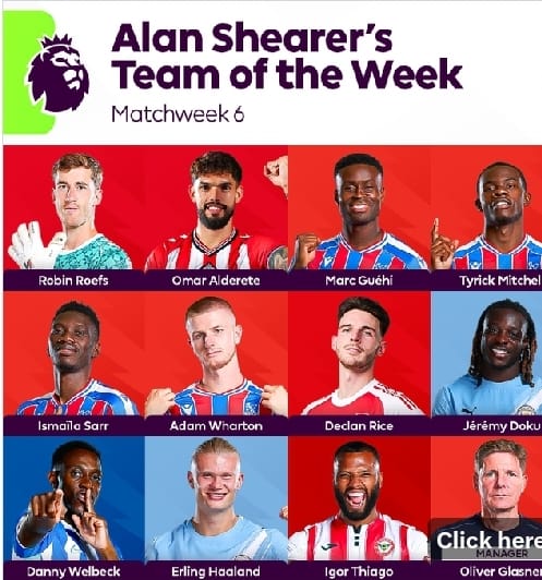 كريستال بالاس يسيطر على التشكيل المثالي للجولة السادسة من الدوري الإنجليزي