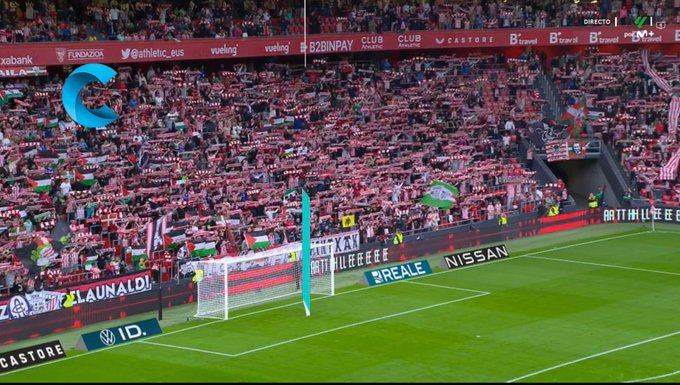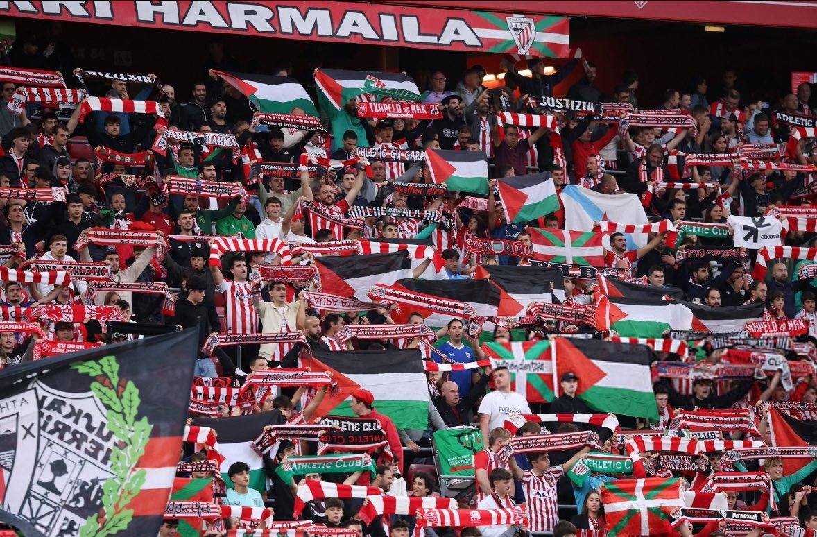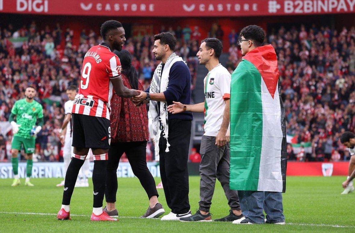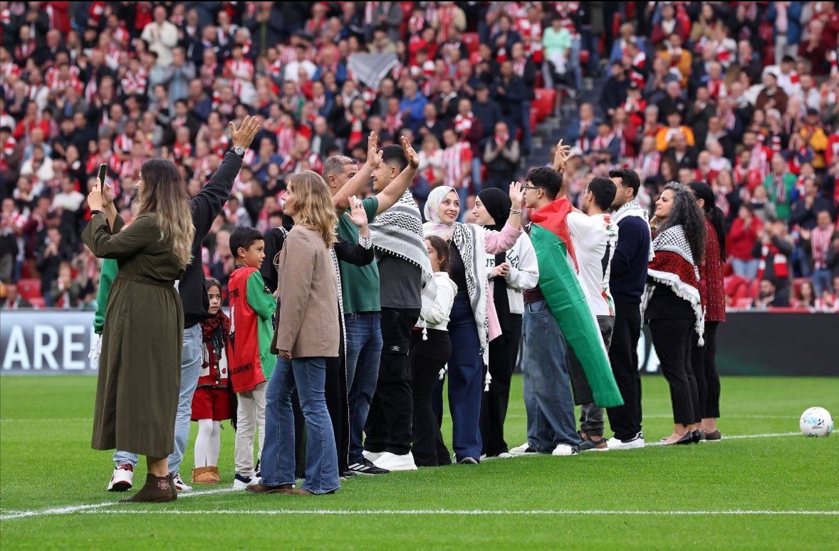 أصبح نادي أتلتيك بيلباو أول نادٍ إسباني يُكرم فلسطين بشكل رسمي، بعدما استضاف مجموعة من اللاجئين الفلسطينيين المقيمين في إقليم الباسك خلال مباراة للفريق على ملعبه الشهير سان ماميس.