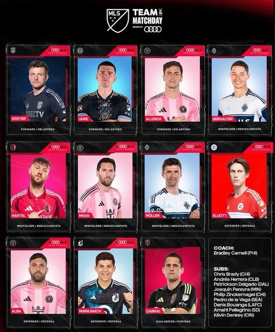 تصدر النجم الأرجنتيني ليونيل ميسي لاعب فريق إنتر ميامي، التشكيل المثالي للجولة الـ38 من منافسات الدوري الأمريكي لكرة القدم، والذي شهد تواجد أيضا النجم الألماني توماس مولر لاعب فريق فانكوفر وايتكابس.