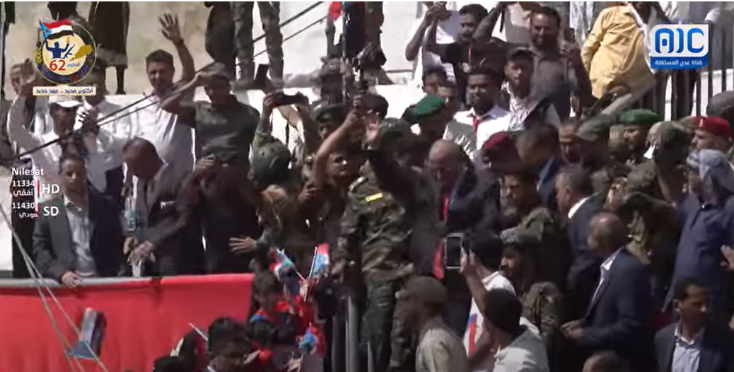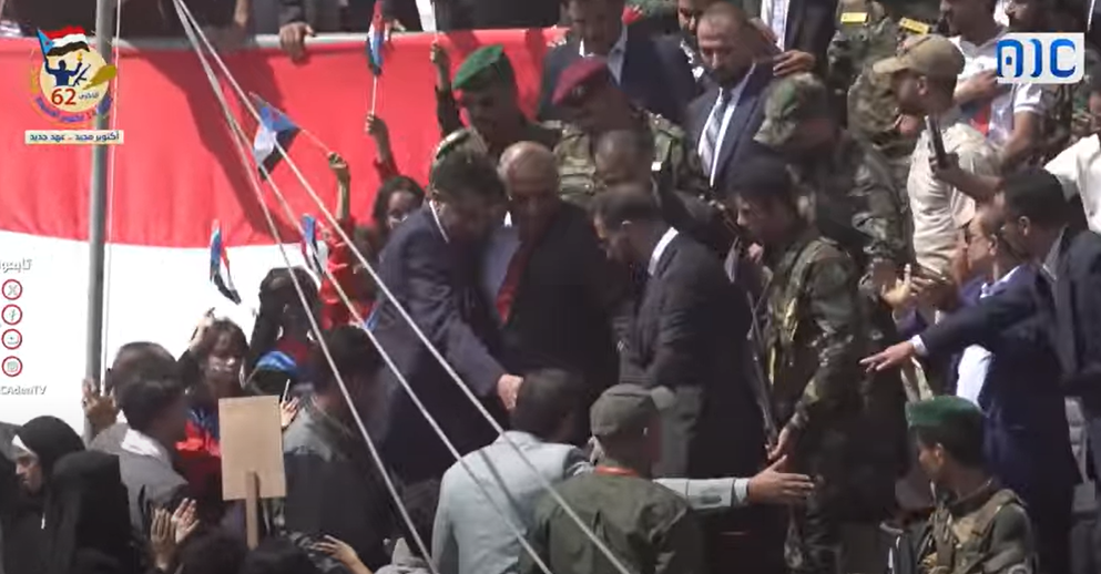 استقبال جماهيري حافل للزُبيدي لدى وصوله ساحة فعالية الذكرى الـ62 لثورة 14 أكتوبر بالضالع (بث مباشر)