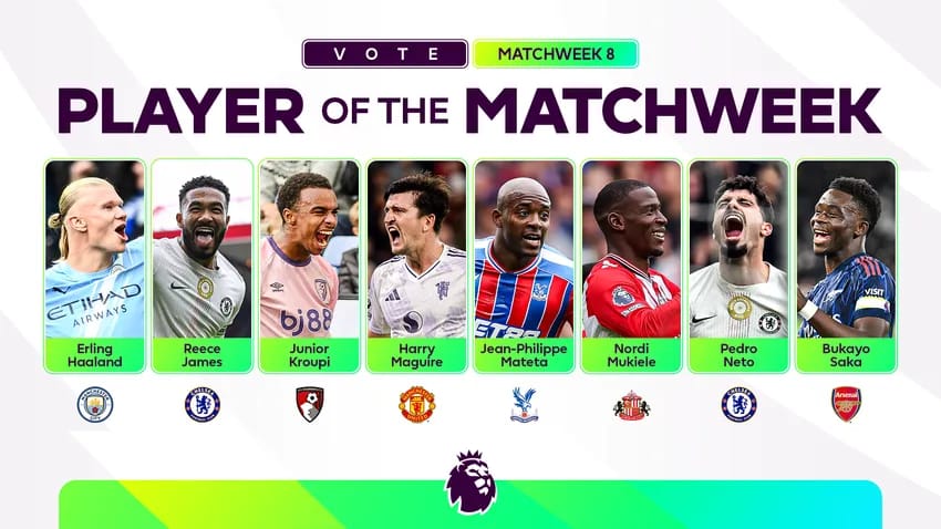 أعلنت رابطة الدوري الإنجليزي الممتاز عن اللاعبين المرشحين لأفضل لاعب في الجولة الثامنة من منافسات الدوري الإنجليزي الممتاز لموسم 2025/2026.