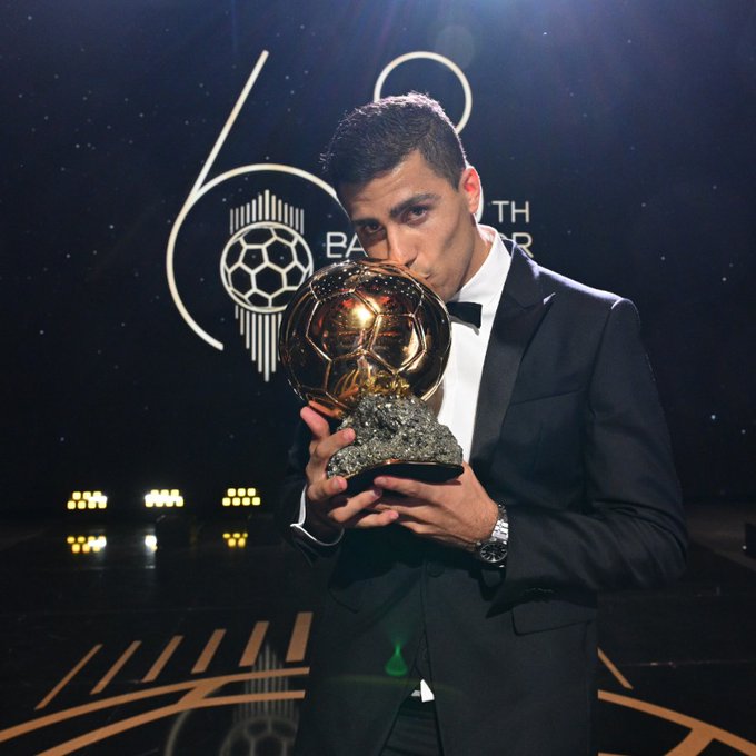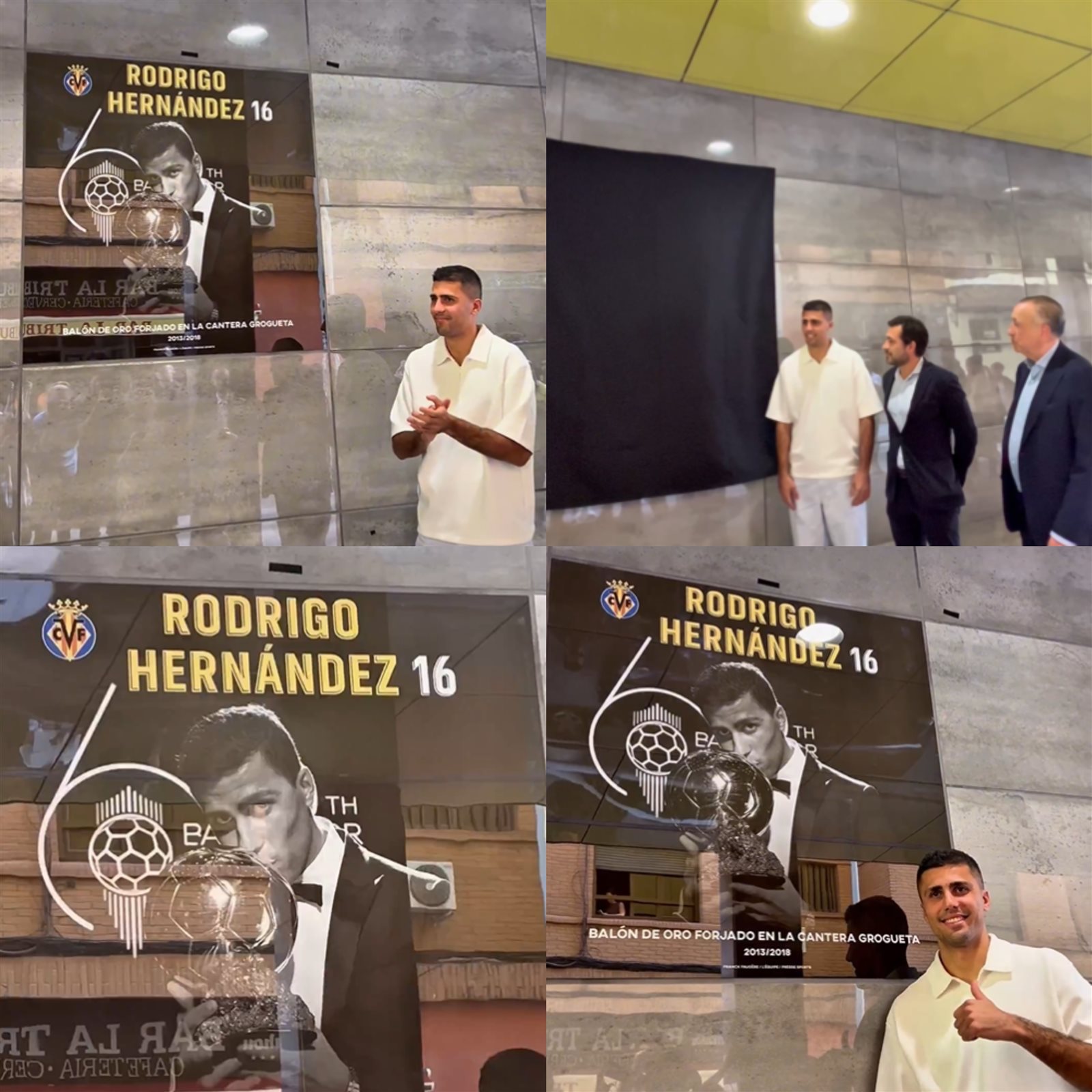 كرم نادي فياريال الإسباني لاعبه السابق رودري نجم مانشستر سيتي الإنجليزي بعد عام من فوزه بالكرة الذهبية كأفضل لاعب في العالم عام 2024.