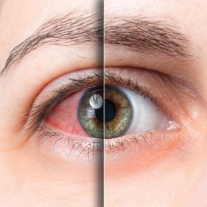 عادةً ما ينتشر غشاء الدموع عبر قرنيتك عند الرمش، إلا أن جفاف العين يُصعّب على عينيك إنتاج الدموع، وقد يؤدي الرمش إلى احتكاك جفونك بالقرنية الجافة، مما قد يؤدي إلى تهيجها، وقد تبدو الأوعية الدموية في الصلبة حمراء، وقد يكون الاحمرار أيضًا ناتجًا عن خلل في غدد ميبوميوس، وهي غدد زيتية صغيرة على الجفون، تُنتج الزيت وتحمي طبقة الدموع.
